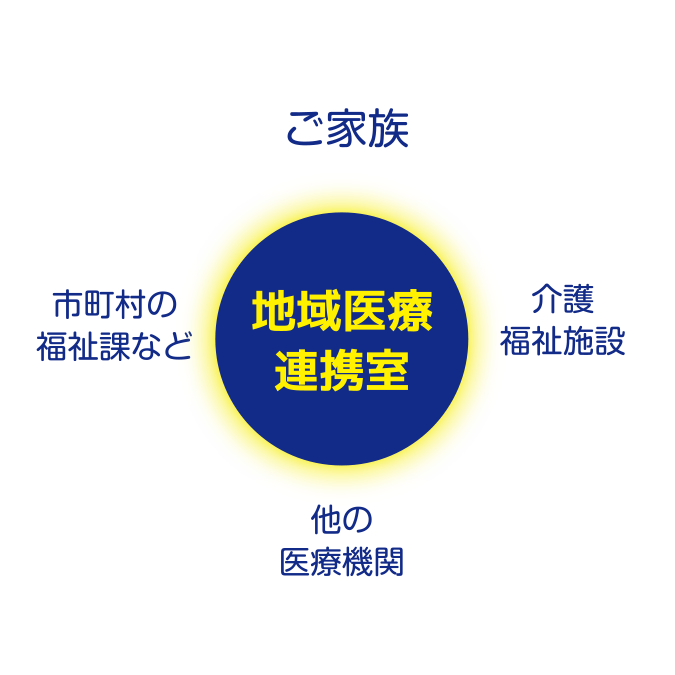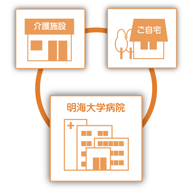 明海大学病院地域医療連携室においては、患者様がスムースに医療機関、介護施設をはじめ、行政や福祉に関わる多くの施設を安心してご利用可能となるようご案内いたします。